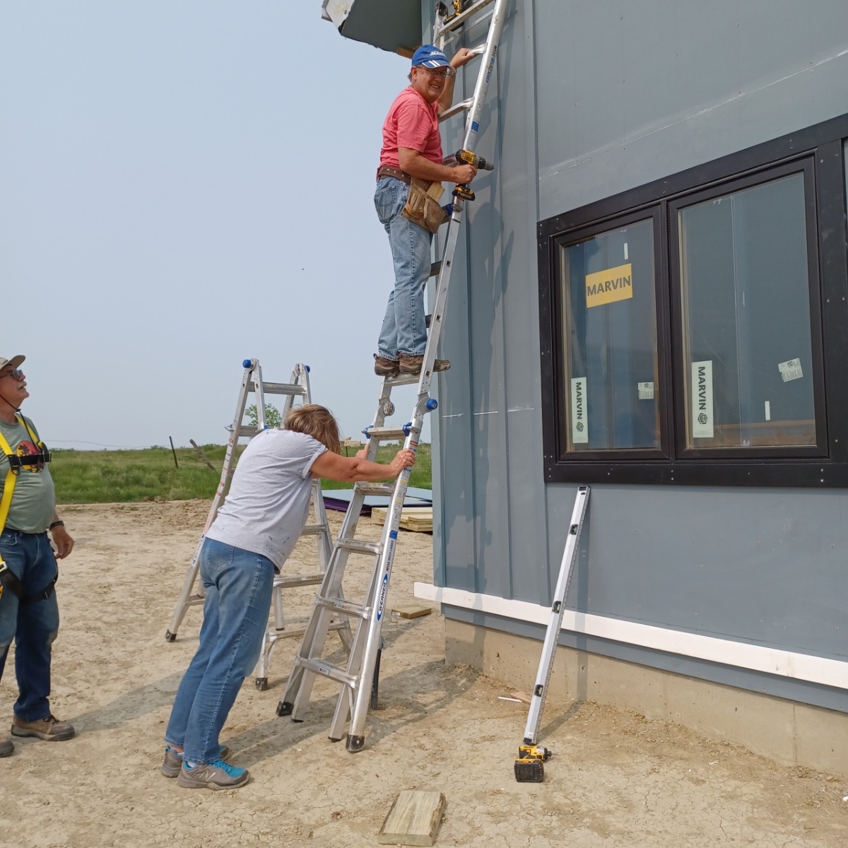 It was a cold November day in 2021. Dan and Marilyn Sager and Danny Maier of the Hoosier-Buell Chapter wrapped up a week in Dupree, SD. It had snowed the day before. The roof on the first house had just been sealed up for the harsh winter to come and all in attendance thought, “How are we going to get three more homes up and done?”