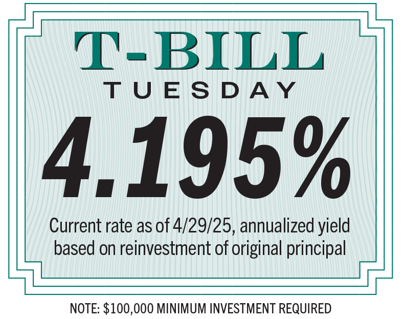 | | | Have cash or cash equivalents earning nothing or next-to nothing? It's a great time to invest in U.S. Treasury Bills, a short-term investment with little risk and easy liquidity. We'll post current rates of return here each Tuesday. Want to put your money to work? Call a Miramontes Capital advisor today! | | |