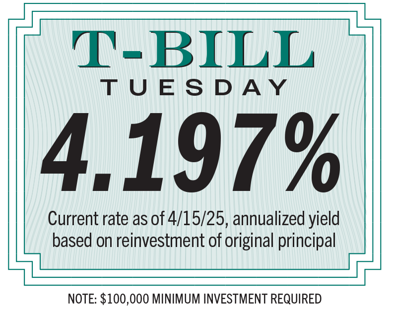 | | | | Have cash or cash equivalents earning nothing or next-to nothing? It's a great time to invest in U.S. Treasury Bills, a short-term investment with little risk and easy liquidity. We'll post current rates of return here each Tuesday. Want to put your money to work? Call a Miramontes Capital advisor today! | | |