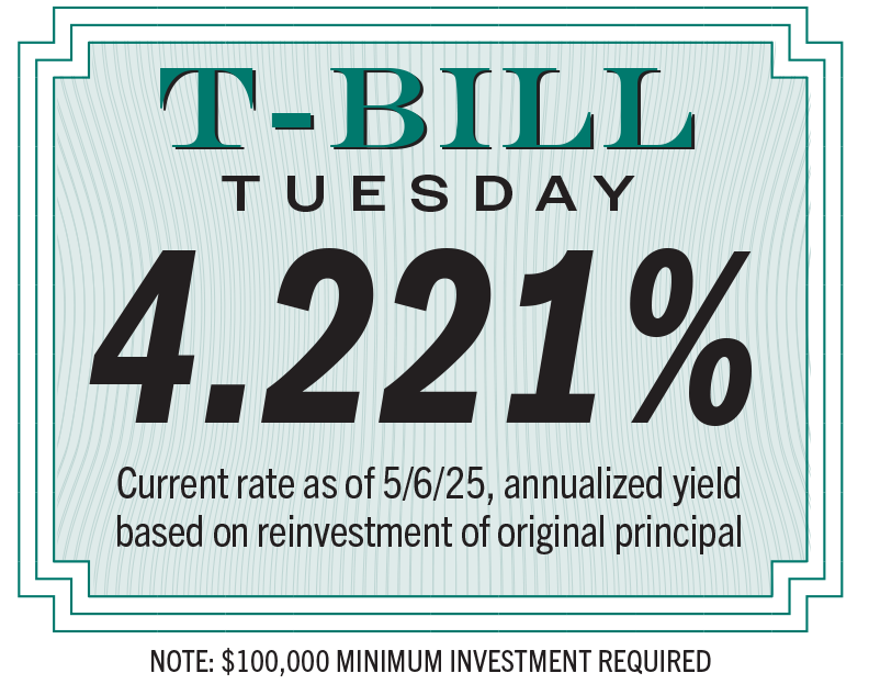 | | | | Have cash or cash equivalents earning nothing or next-to nothing? It's a great time to invest in U.S. Treasury Bills, a short-term investment with little risk and easy liquidity. We'll post current rates of return here each Tuesday. Want to put your money to work? Call a Miramontes Capital advisor today! | | |