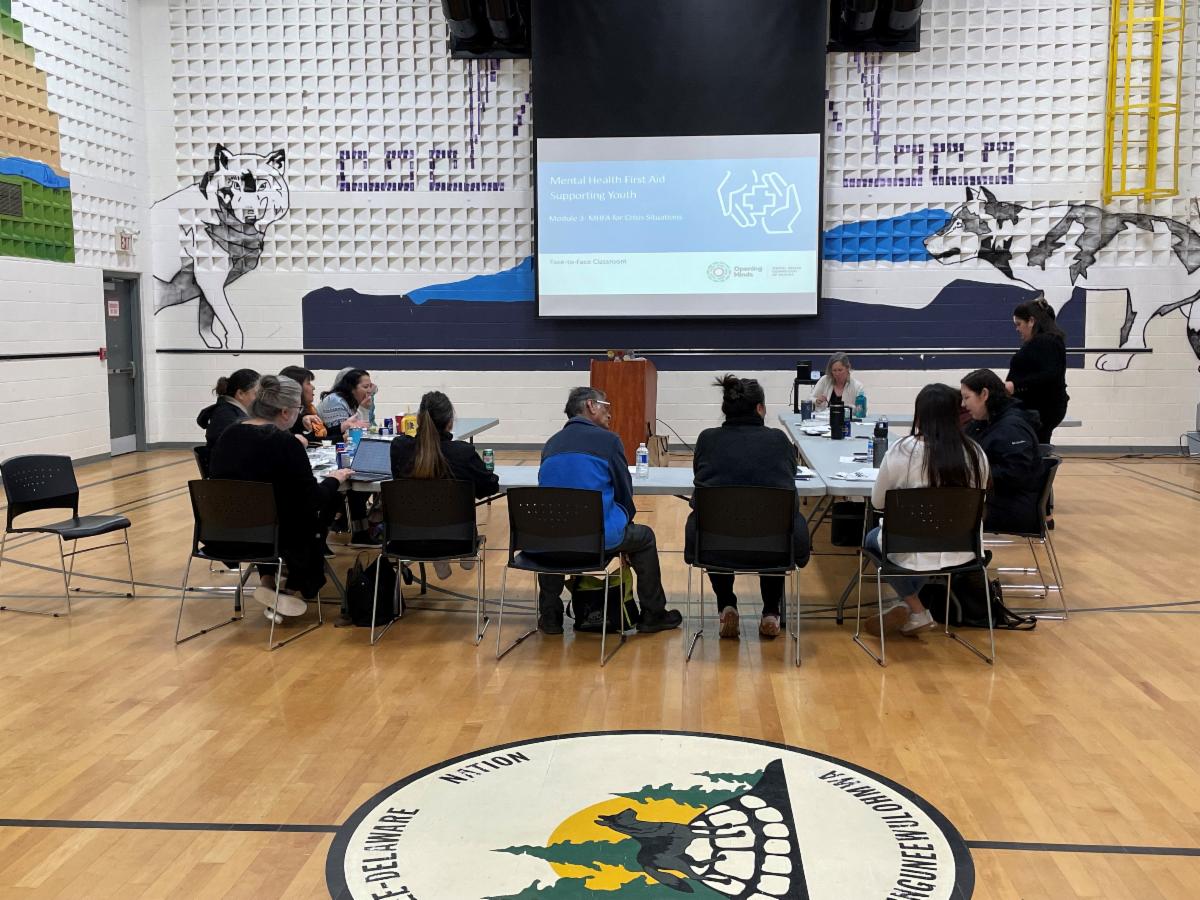 SFNS partnered with Opening Minds, a division of the Mental Health Commission of Canada to offer a full-day course on Mental Health First Aid – Supporting Youth. The session took place at the Munsee-Delaware Nation Community Centre with 13 participants in attendance. Mental Health First Aid (MHFA) is the help provided to a person who may be experiencing a decline in their mental well-being or who might be in a crisis. The course is designed for adults who have frequent contact with young people.