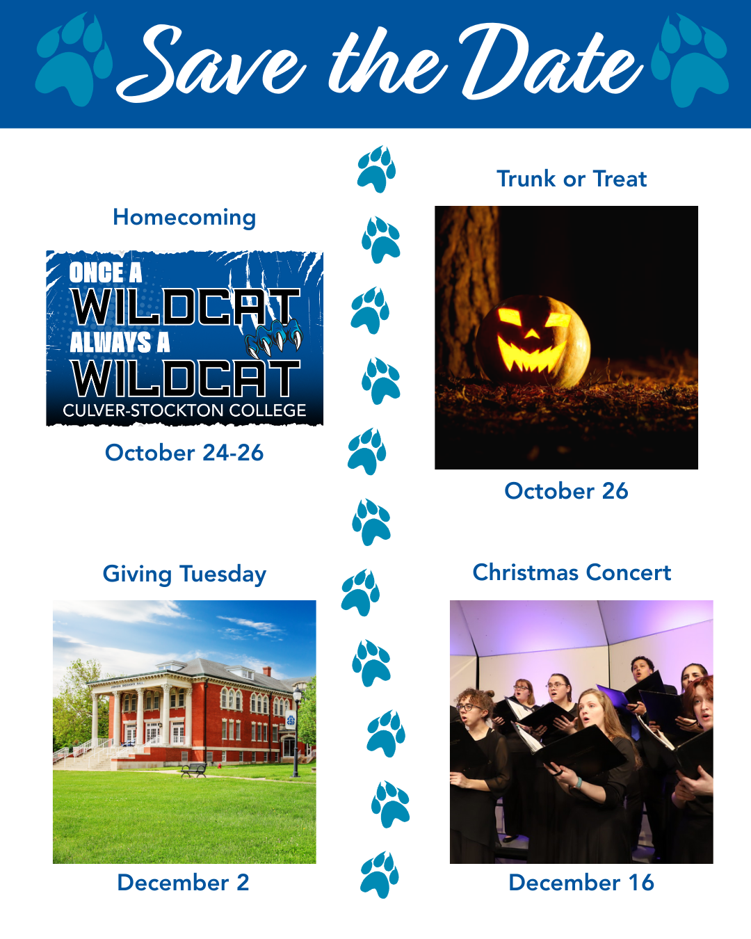 Congratulations to our 2025 Alumni Honors Award Recipients! | | Elisa (Mineck) Harris ’95 is a nationally respected healthcare attorney and visionary leader whose nearly 20-year career has helped shape innovative care delivery and payment models across the country. After beginning her career as an ordained pastor, she earned her J.D. from Vanderbilt and went on to serve as General Counsel for pioneering healthcare organizations before becoming a founding partner of the Nashville office of Barnes & Thornburg LLP. | | Kent Clow ‘78, a dedicated C-SC alumnus, earned a Bachelor of Science in Business Administration and has been a strong advocate for sustainability. He served on the C-SC Board of Trustees from 2012 to 2020, chaired the advancement committee, and helped re-launch the Kansas City Alumni Association. With a 30-year career at Honeywell International in aerospace and defense, Kent has also mentored many Wildcats and was inducted as an honorary member of Alpha Tau Omega in 2023. | | Dr. Alexis Gumm ’11 is a pediatric gastroenterologist and hepatologist, specializing in liver transplantation, with a medical degree from the University of Illinois College of Medicine. She balances her clinical work with research on Fontan-associated liver disease, securing over $200,000 in grant funding for her studies. Additionally, Dr. Gumm serves as an Assistant Professor at the Medical College of Wisconsin. | | Cindy McCutchan ’95 is a beloved member of the Culver-Stockton College community, recognized for her decades of dedicated service and leadership. Since beginning her career at C-SC in 1975, she has played vital roles across campus, most notably in the Information Technology department, where she has served for the past 30 years in various capacities including Software Coordinator, Webmaster, and Database Administrator. Cindy is being honored with the Dome Award for her lasting impact on campus technology and her invaluable contributions to the college. | | Edie Wolf, honored with the Honorary Wildcat award, is a dedicated educator and community leader who has made significant contributions to early childhood education and after-school programs for underprivileged children. She and her husband, Ted Wolf ‘78, are passionate supporters of Culver-Stockton College, regularly attending athletic events and Homecoming, and helping serve post-game meals to football players since 2017. Though not a graduate, Edie exemplifies the Wildcat spirit through her unwavering dedication and service to the C-SC community. | | We hope you'll join us in celebrating these honorees during the Alumni Honors Banquet on Friday, October 24th during Homecoming weekend! | | Culver-Stockton College Reports 25% Growth in New Students and Highest Retention in 10 Years | | Culver-Stockton College is celebrating significant growth this fall, welcoming a student body that reflects both strong regional ties and expanding global reach. New student enrollment increased by 25% compared to last year, for a total of 314, with students representing 37 states, Puerto Rico, and 12 countries. | | In addition to the increase in new students, C-SC achieved a 10+ year high in student retention (excluding the 2020 pandemic year), with close to 90% of students returning from spring to fall. The number of transfer students also increased by 50% compared to last year, marking C-SC’s highest total in a decade, excluding the year when many students transferred from the now-closed Iowa Wesleyan. | | Hilltop Heroes Cheer on the Wildcats | | | | Saturday, September 20th, the Hilltop Heroes joined President Schellenberger in the press box to cheer on the Wildcats against Missouri Valley. Make your gift recurring and join the Hilltop Heroes donor club! | | Innovation Alley, a hub for experiential learning and student-run businesses, is designed to spark creativity, collaboration, and entrepreneurship. From the Podcasting Studio and Media Lab to the Creative Production Lab and Maker’s Lab for creating prototype products, Innovation Alley blends entrepreneurial learning with hands-on application. Open to all majors, Innovation Alley empowers Wildcats to explore ideas, experiment boldly, and transform vision into reality. | | | | | |