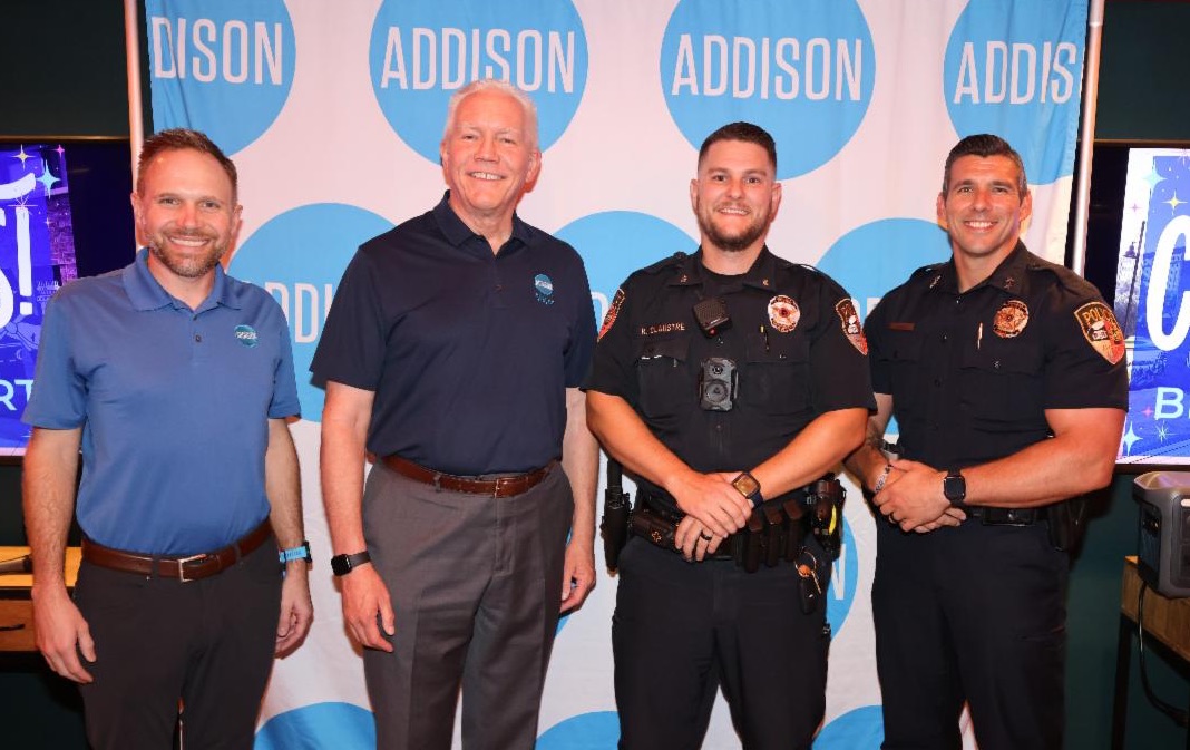Mayor Bruce Arfsten and City Manager David Gaines recently helped celebrate the 2025 graduating class of the BraveHeart: Approach to Leadership program. Created through a partnership between Addison’s Human Resources Department and the City Manager’s Office, this leadership series was designed around Addison’s BRAVE core values. The program consists of six educational courses covering a wide range of topics, from conflict resolution and emotional intelligence, to gaining insight into how key Town departments operate, including public works, parks, and finance.