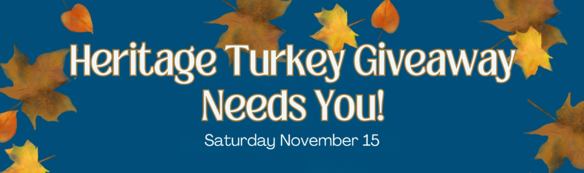 It's almost time for our Annual Heritage Turkey Giveaway on Saturday, November 15! Each year, we bless our community by providing free turkeys and Thanksgiving meal boxes - and we need your help to make it happen!