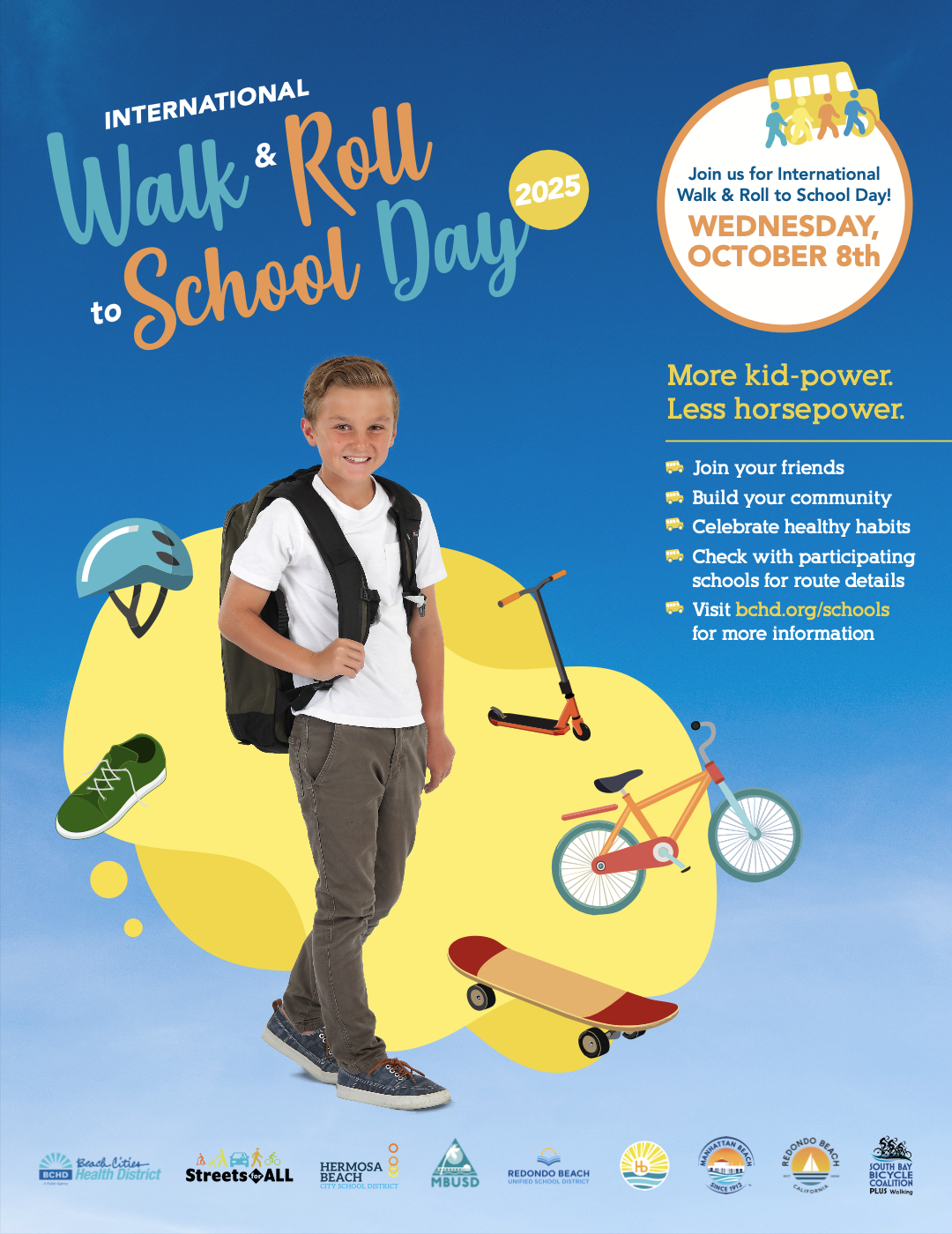 Hermosa View, Vista, & Valley Schools are excited to participate again in the Beach Cities Health District's Walk and Roll to School Day on Wednesday, October 8, 2025. All HVS students, families, and staff are invited to join other HVS Dolphins and walk to school. Please note: HVS students will not be marked tardy if they participate in this event. Walking route maps, meet and departure times, and other details can be found in each school site PDF below: