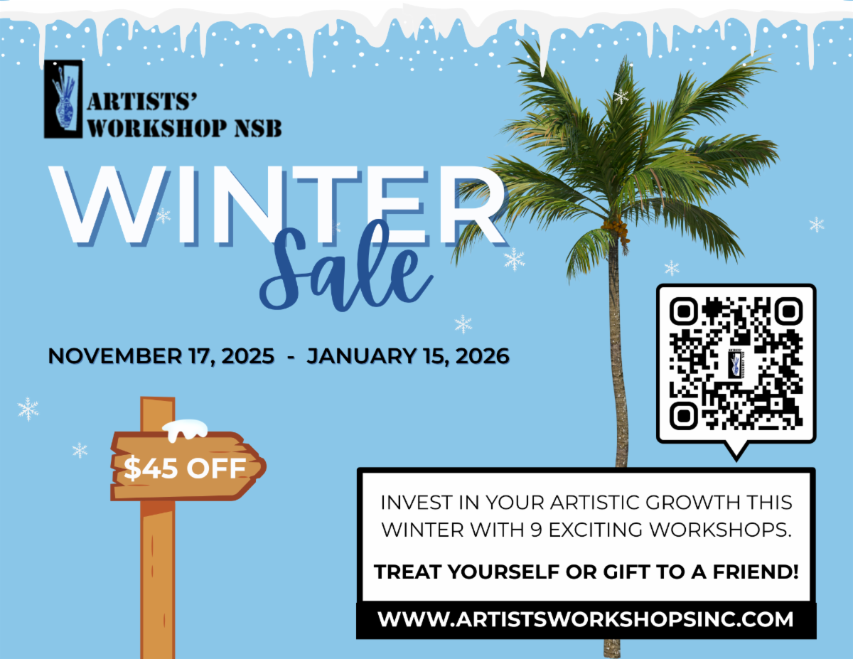 As you all should be aware, the 2025 NSB Plein Air Paint Out was the first year this tremendous event belonged solely to Artists’ Workshop! It was (and is) a wonderful opportunity for us, as a non-profit, to raise funds to keep us growing and expanding programs, and, most importantly, attracting community members who may want to “try” art but have been hesitant in the past.