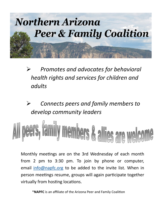 Information & Resources for: Mental Health Support Groups / Crisis Lines / Petitioning (Involuntary Commitment / Therapists / Seriously Mentally Ill (SMI) / AHCCCS (Medicaid),