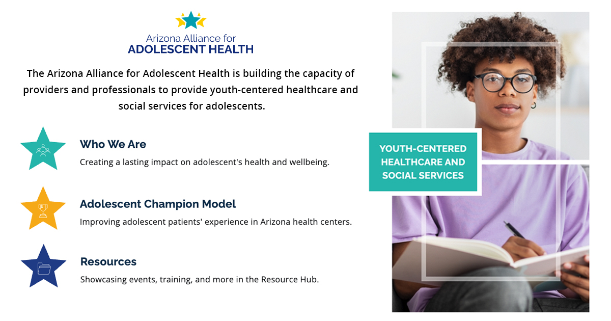 About Us - Arizona Alliance for Adolescent Health | At the Arizona Alliance for Adolescent Health (The Alliance), we believe individuals working with youth benefit from opportunities for strategic and collective action that has lasting impact on adolescent's health and wellbeing. Adolescence is a critical stage of development during which foundations for lifelong health and wellbeing are established. | | | |