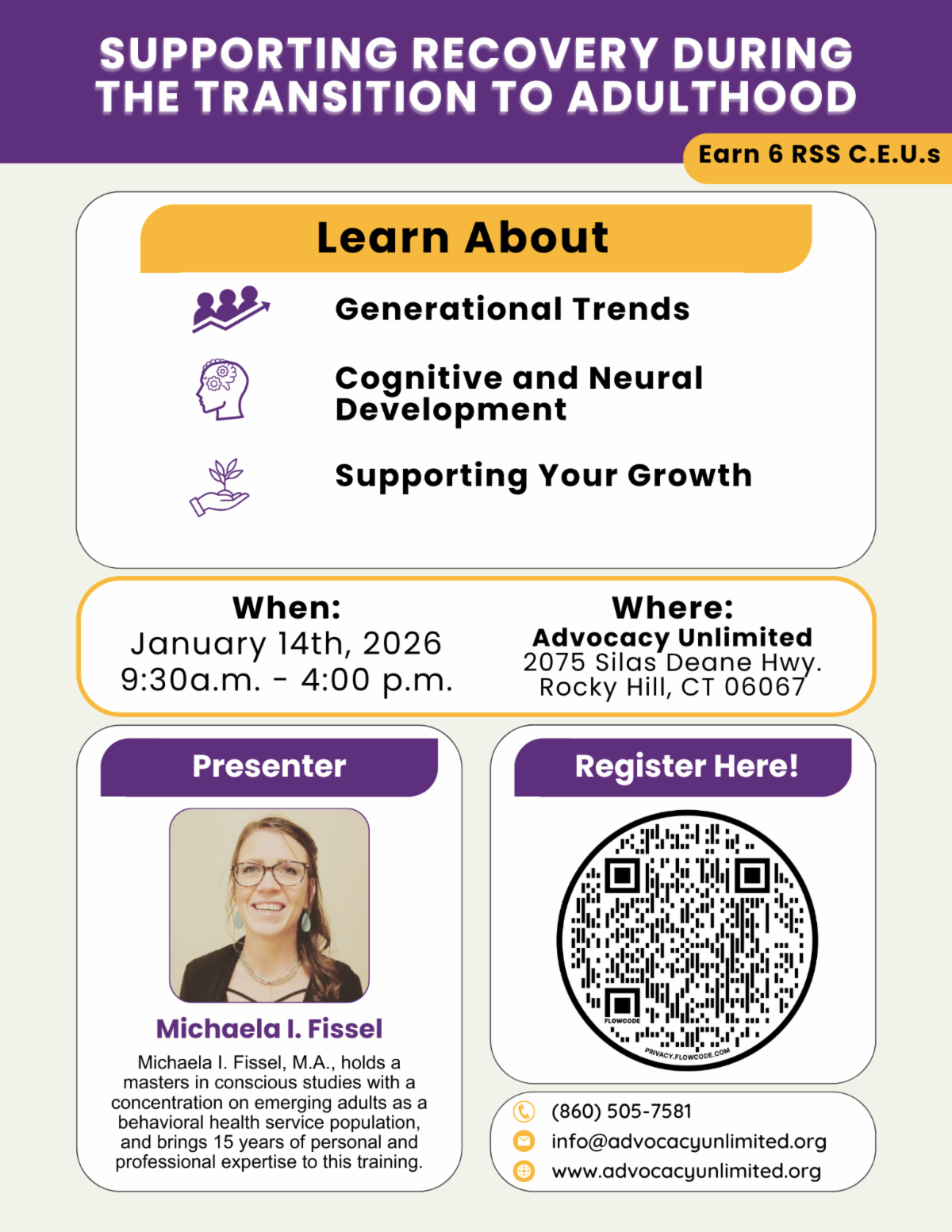 | | | | CALL: (860) 505-7581 | EMAIL: INFO@ADVOCACYUNLIMITED.ORG | | |