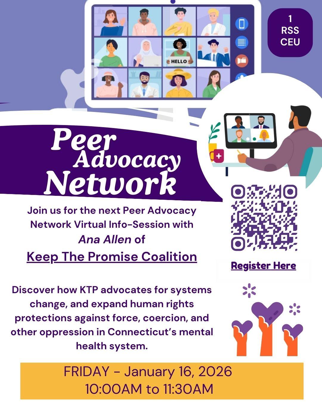 The Peer Advocacy Network is space for people working in peer recovery services and allies to meet monthly and discuss topics related to the professional practice of peer support. Together, we work toward improving access to peer delivered recovery resources, unifying the peer recovery workforce of Connecticut, and dismantling psychiatric oppression.