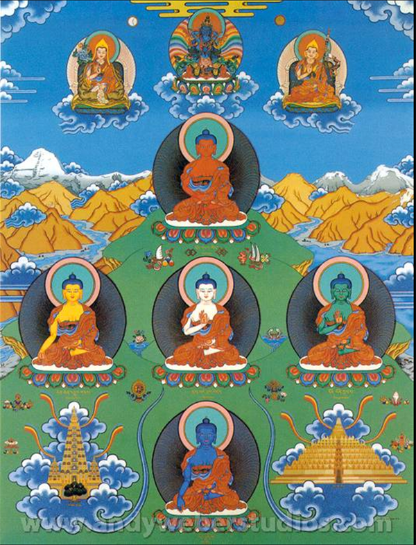 Vairochana in the center (white),