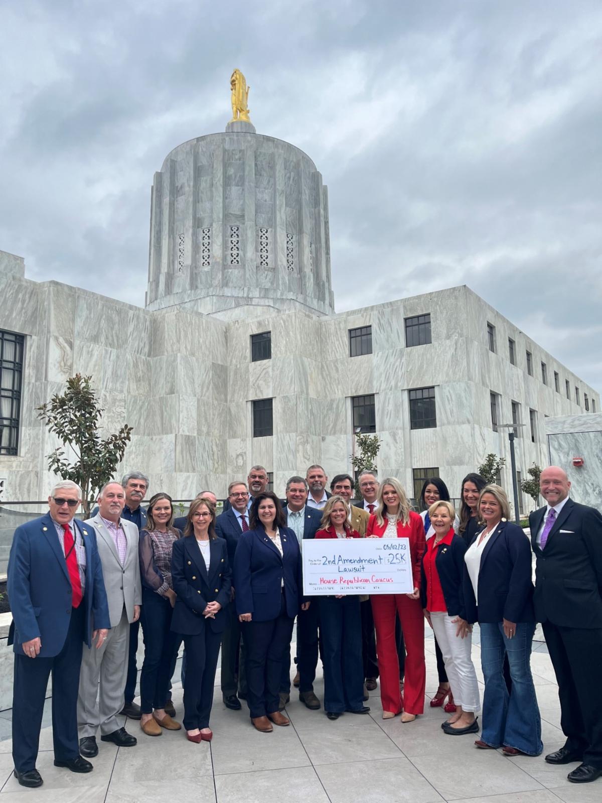 On Tuesday, we debated HB 2005 for nearly 4 hours. I voted no on this bill because it directly affronts the Oregon and federal constitutions. To that end, I joined my House Republican Caucus members in presenting a $25,000 check to pay to challenge this bill in court.