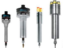 Drop in the powerful compact Sealed Steel Series for governed 65,000 rpm with power to 0.95 hp. Ready for Lathes, Swiss Automatic, Robotics and Fixtured applications. h7 tolerance + mounting diameters from 20 mm to 40 mm with hose exhaust. Perfect for marking, drilling, milling, finishing and more at constant high speed with super precision.