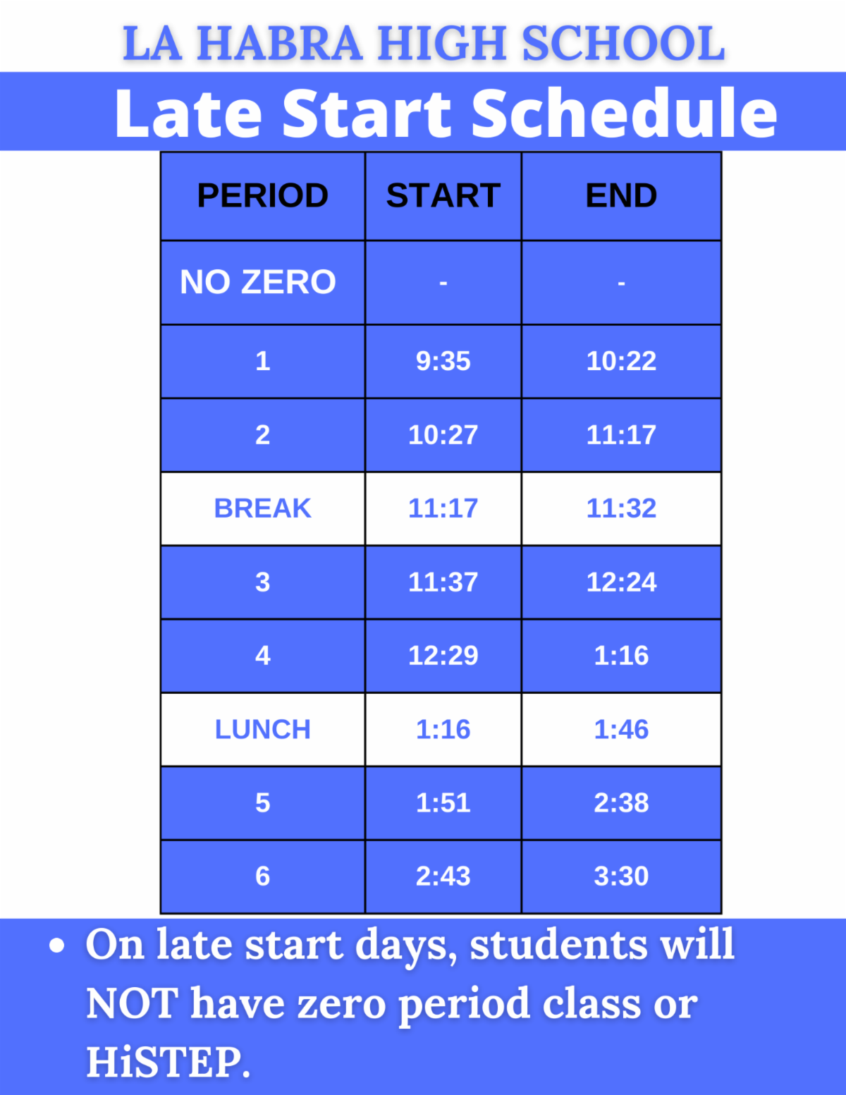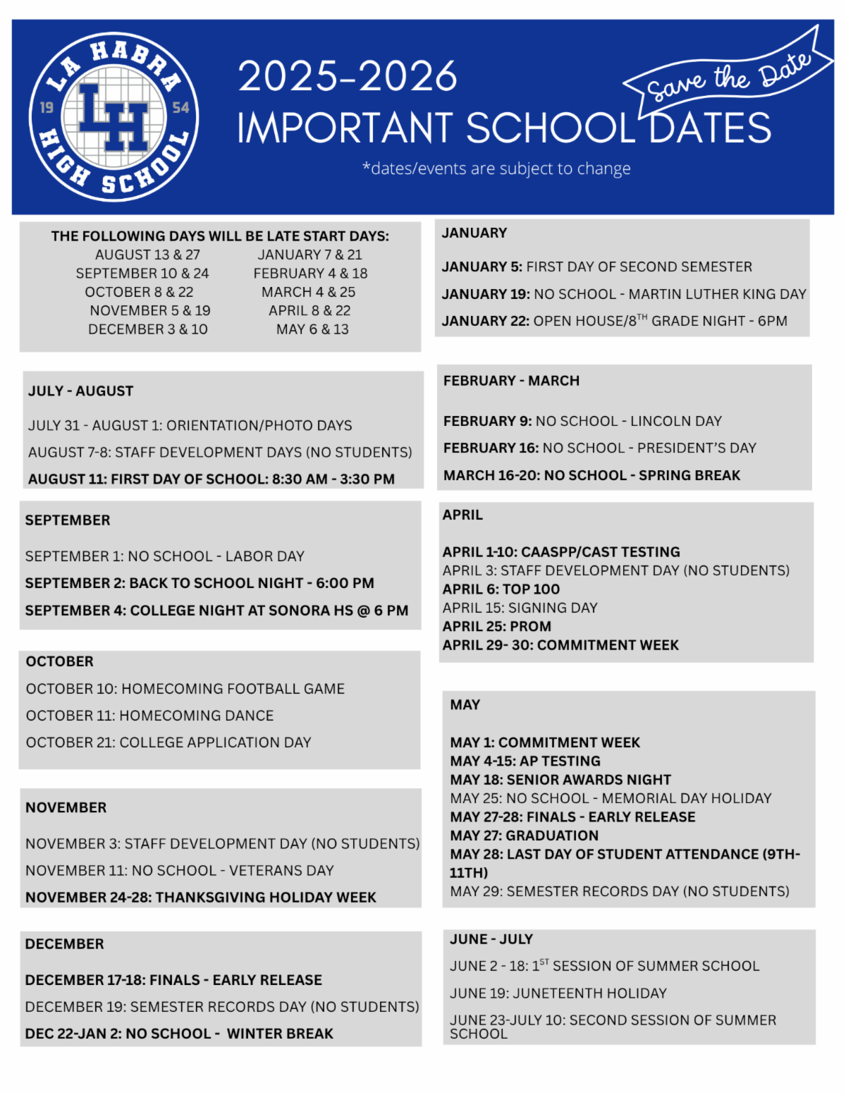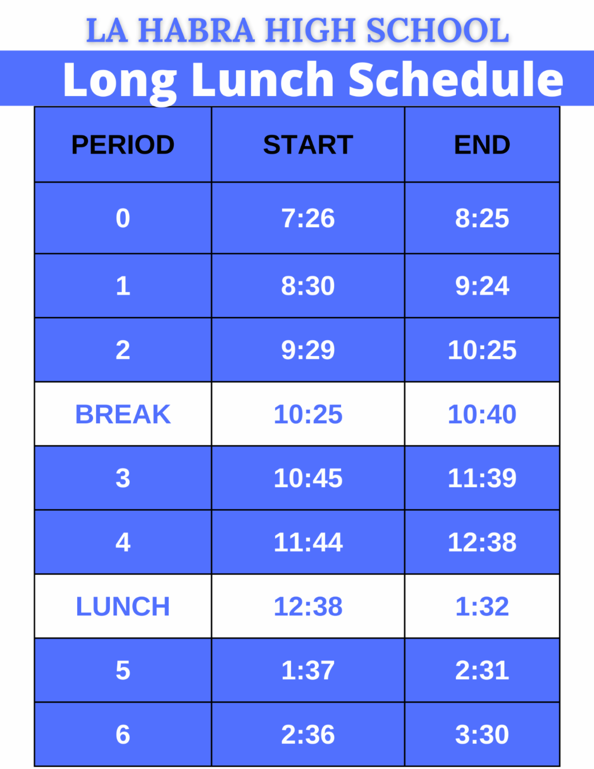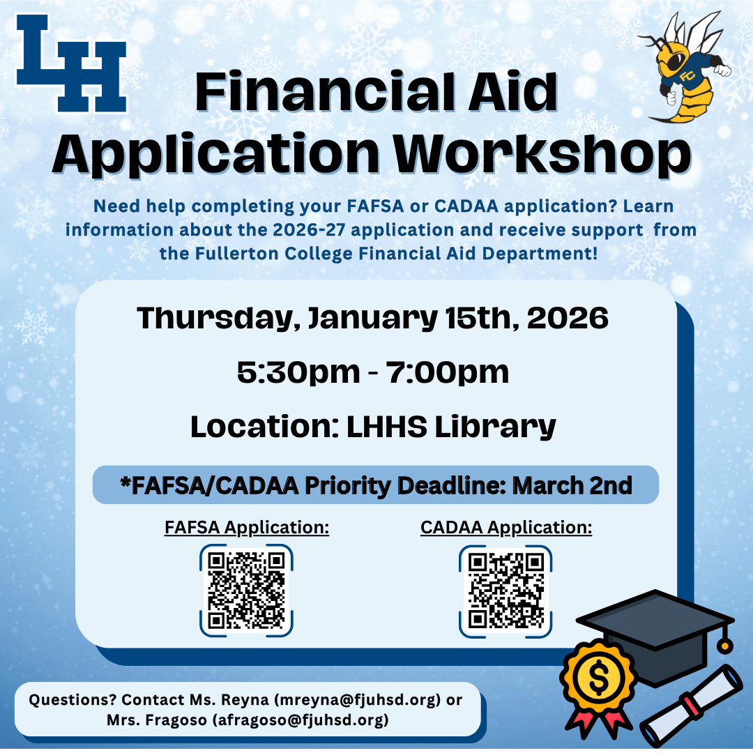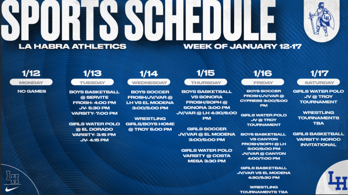 Finally, over the next few weeks, we will be sharing “Did You Know?” highlights about La Habra High School to showcase the great accomplishments of our students, staff, programs, and community over the past few years. These highlights will lead up to our Open House on Thursday, January 22, and we look forward to celebrating all that makes La Habra High School special.
