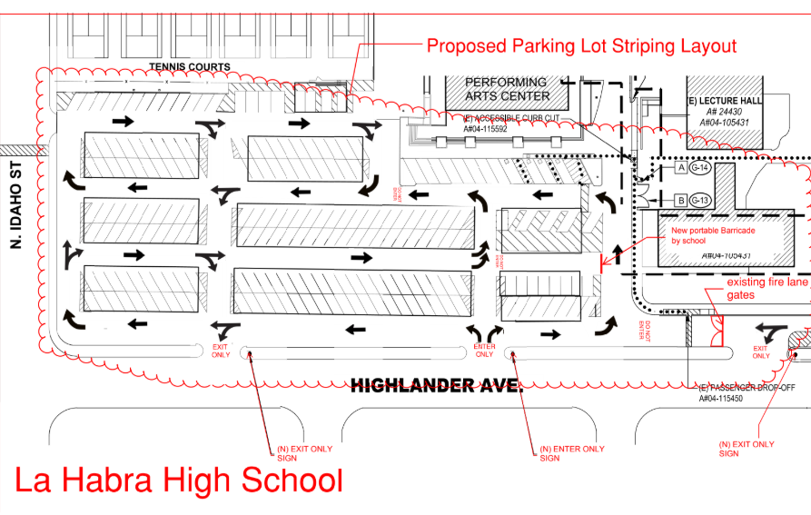 New traffic flow for our student parking lot. Please pay attention to the arrows to help guide you safely through the parking lot to improve safety and circulation. | |