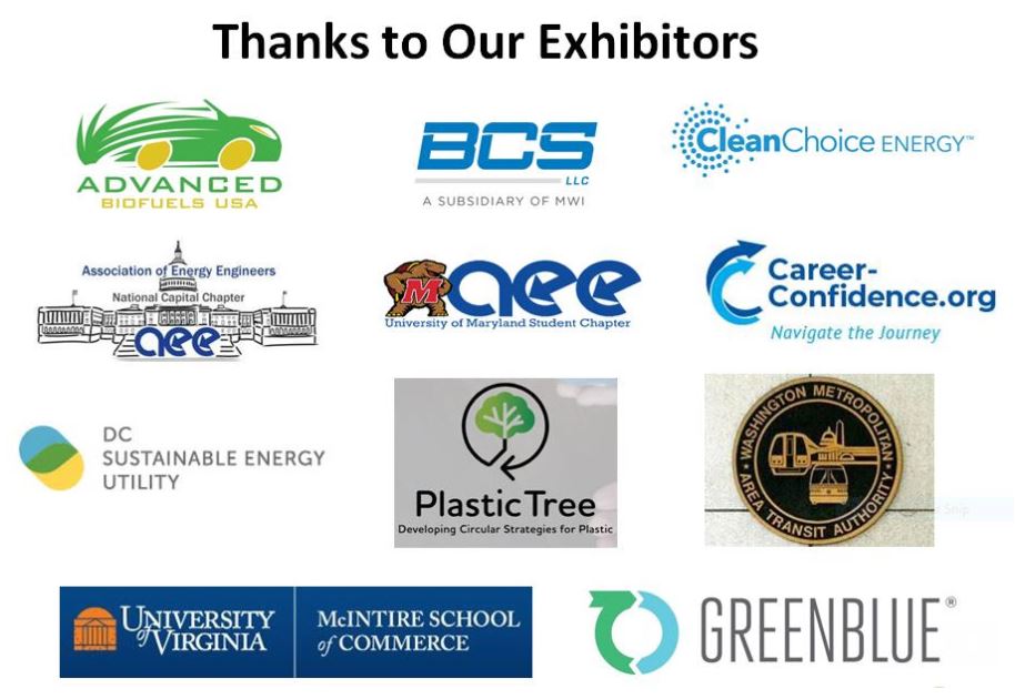 Other notable information discussed included: Maryland’s ambitious plans for renewable energy (50% by 2030), Washington DC's commitment to be carbon-neutral and climate resilient by 2050, links between green jobs and K-12 education, updated composting and recycling strategies, micro transit, food waste, value of networking (via organizations like Leaders in Energy and others), using LinkedIn as a job searching tool, organizations which provide green job finding assistance, and fun catch phrases from the Panel 2 speakers to stay motivated during the job search. These included: Do good, do it well,” “Determination is the key,” “Finding inspiration and working for your passion” and “Use LinkedIn.”