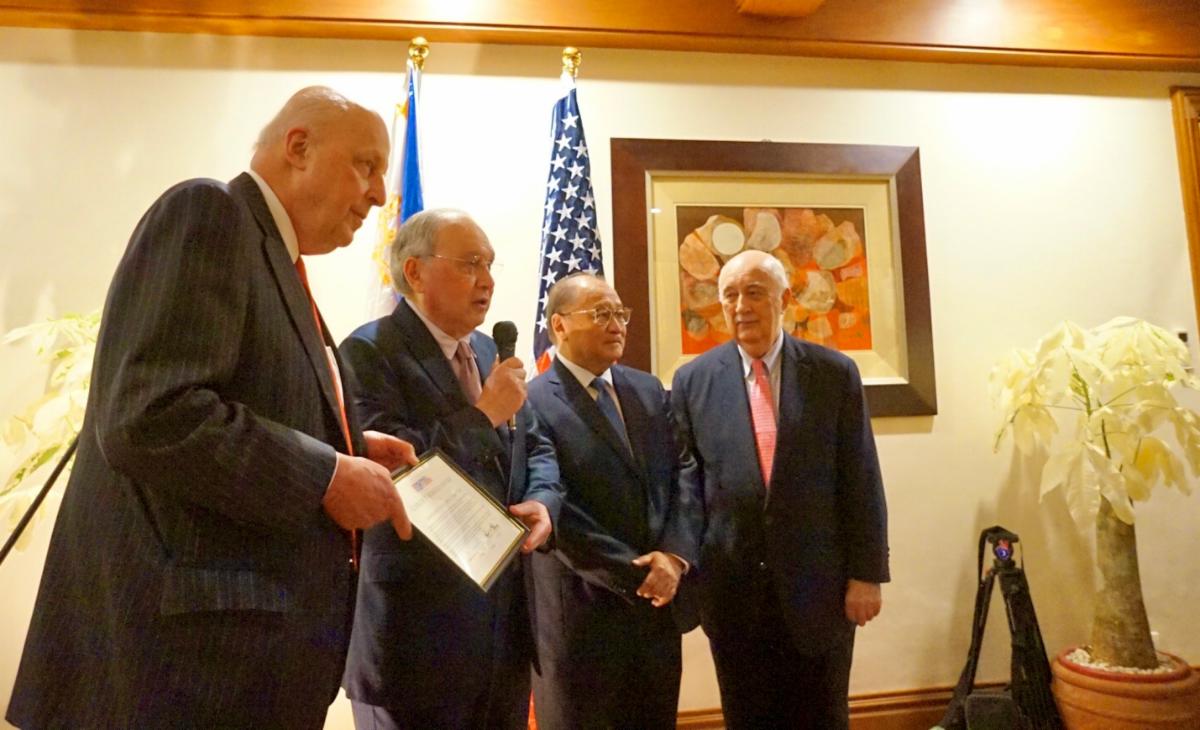 Society Co-chairs Negroponte and Manuel V. Pangilinan conferred the 2022 Carlos P. Romulo award on Ambassador Romualdez in recognition of his superior diplomatic service and support for the US-Philippines Society.