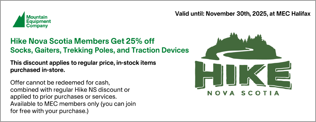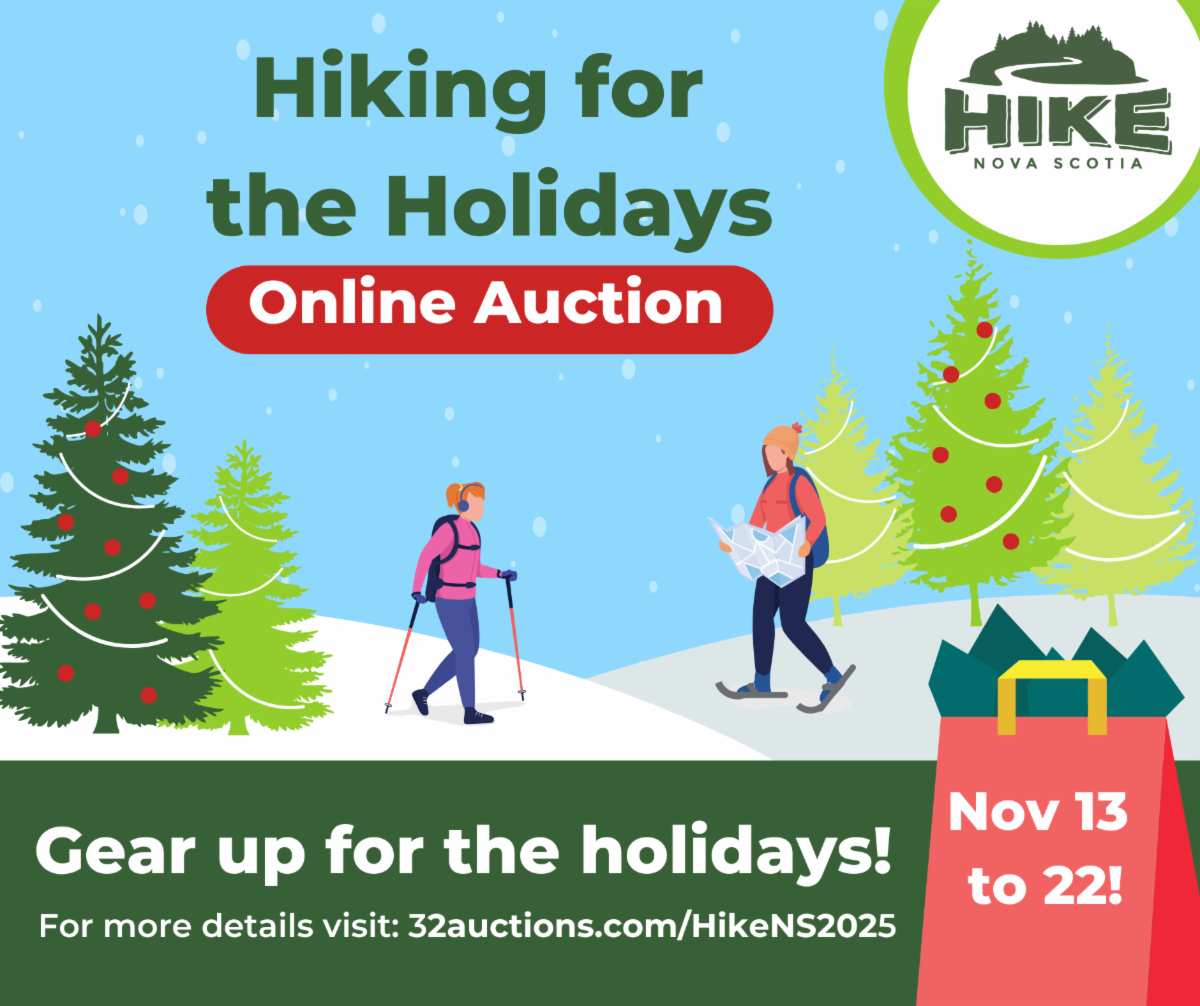 Support our upcoming Hiking for the Holidays Online Auction from November 13 to 22. Shop once and give twice: once to your loved ones and once to Hike NS! From big gifts to stocking stuffers, we've got presents that hikers will love. Bidding opens Thursday, November 13. View items here.