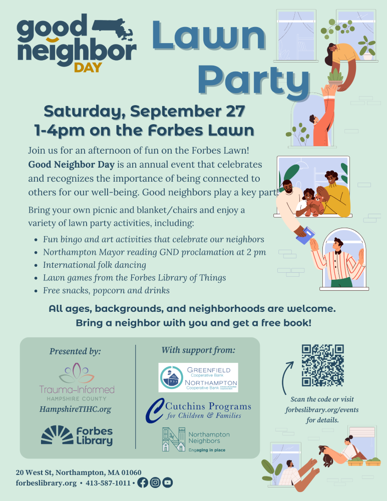 Sep 27: Good Neighbor Lawn Party at Forbes Library