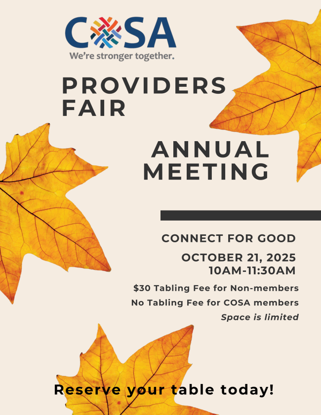 Oct 21: COSA Providers Fair & Annual Meeting 10am-11:30am