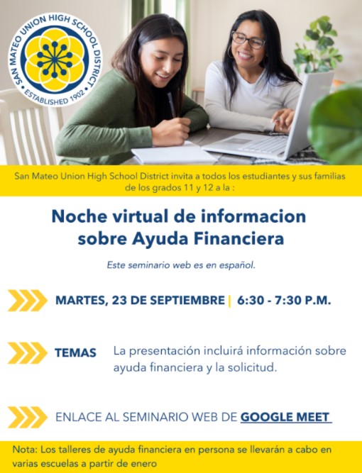 San Mateo Union High School District invita a todos los estudiantes y sus familias de los grados 11 y 12 a la :