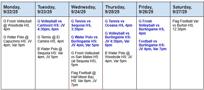 Come support our athletes! Go Knights! (Games in BLUE = home games)