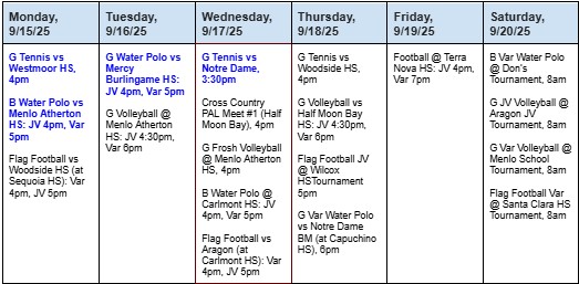 Come support our athletes! Go Knights! (Games in BLUE = home games)