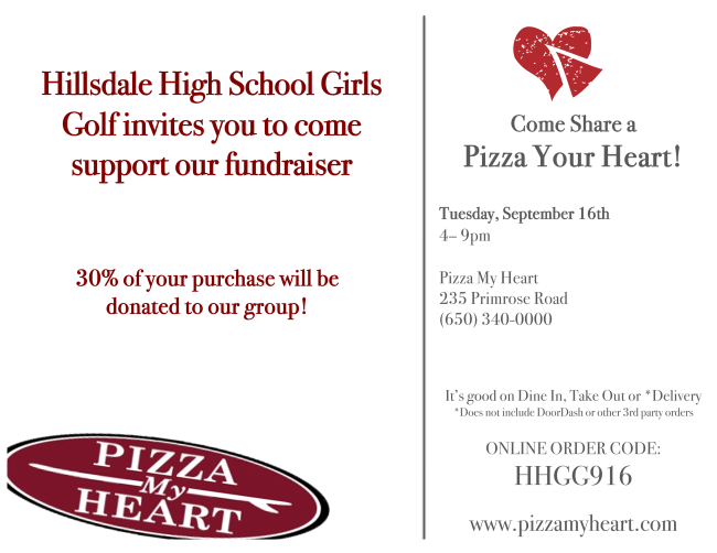 Tue Sept 16: Pizza My Heart ~ Girls' Golf Fundraiser (Flyer)
