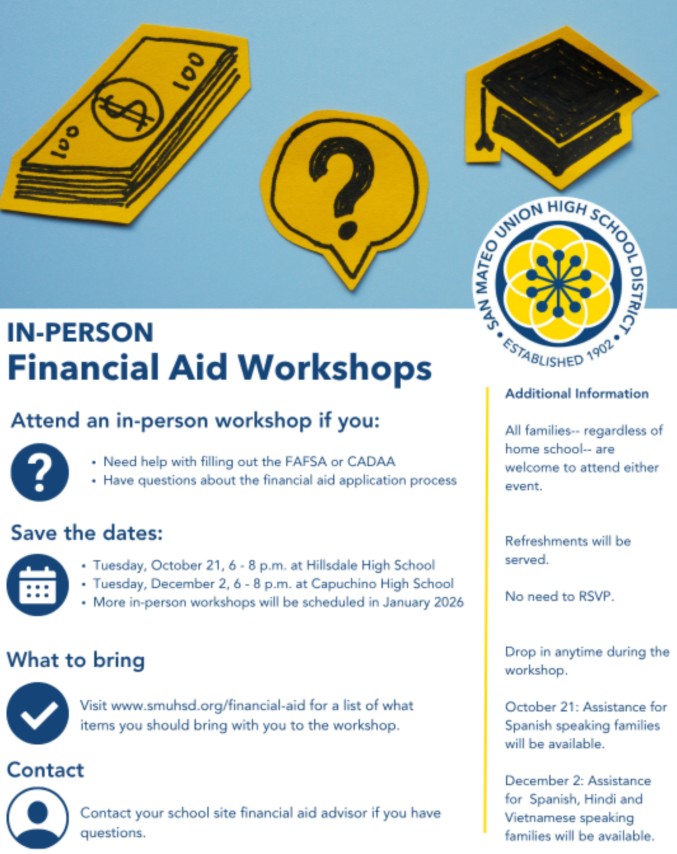 More in-person workshops will be scheduled for January 2026 - visit www.smuhsd.org/financial-aid to stay up-to-date.