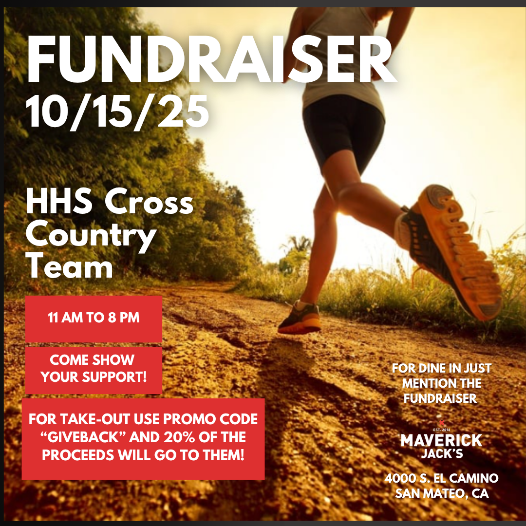 Dine-in (mention HILLSDALE) or order take-out (promo code GIVEBACK) from Maverick Jack's in San Mateo and they will donate 20% of the total bill to the team. Enjoy a delicious meal while supporting a great cause! We will have the big room in the back so all the kids can easily sit together!
