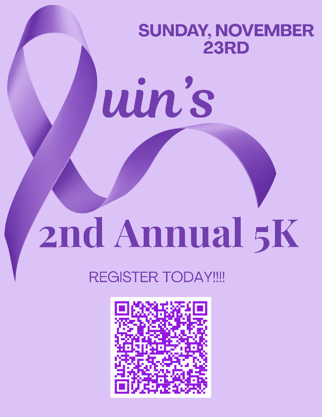 Please join us for Quin’s 2nd Annual 5K on Sunday, November 23rd. This special event is an opportunity to come together as a community to honor Quin, enjoy time with friends and neighbors, and start the day with fun and fitness. Whether you choose to walk, jog, or run, we hope you’ll join us in celebrating Quin’s spirit and making lasting memories. The event will take place rain or shine! We look forward to seeing you there!