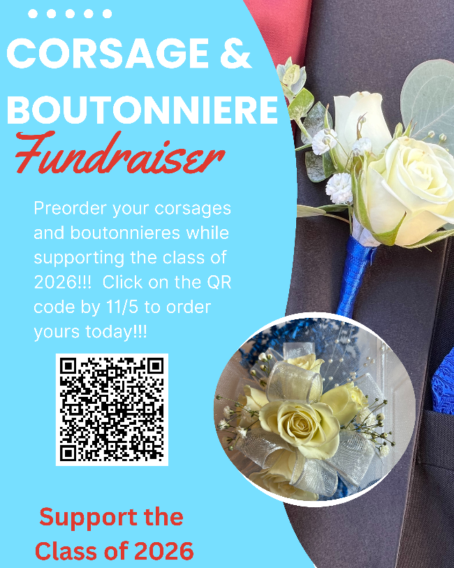 Order your corsage or boutonniere through our fundraiser. You’ll save money and support the senior class at the same time! Orders due by Wednesday November 5.