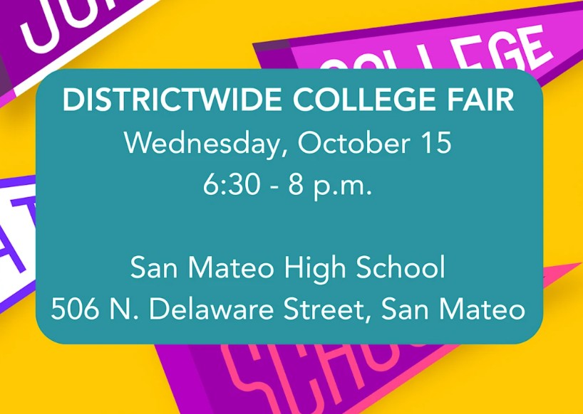The San Mateo Union High School District invites students and families to attend the annual Districtwide College Fair on Wednesday, October 15 @ 6:30 - 8 p.m.