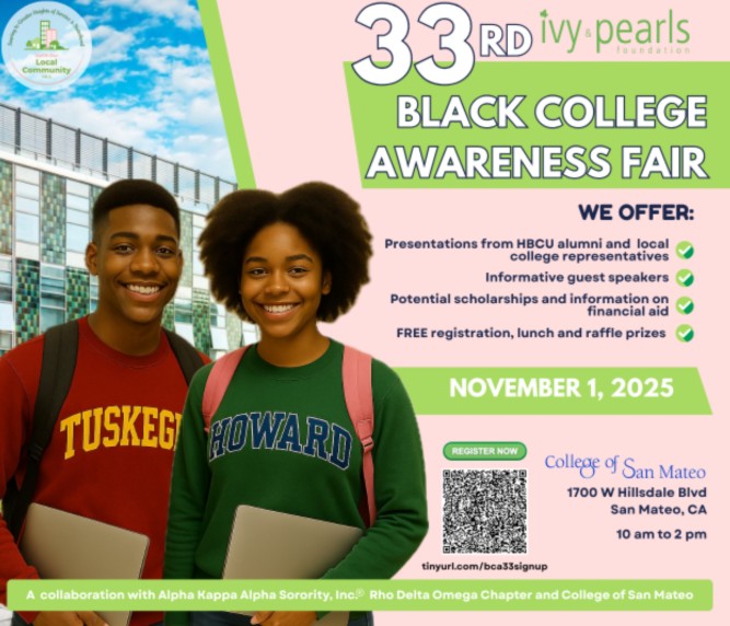 The College of San Mateo is hosting the Ivy and Pearls Foundation, and Rho Delta Omega of Alpha Kappa Alpha Sorority, Incorporated for their 33rd Black College Awareness Fair on Saturday, November 1.