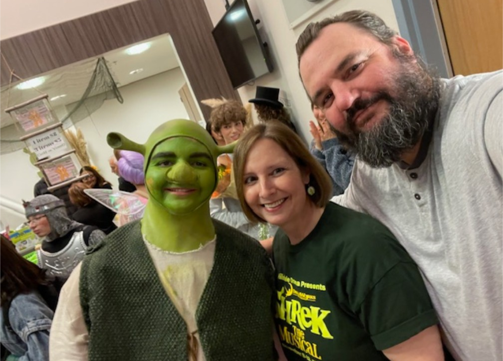 Hillsdale is home to a thriving community of parent volunteers. Hear from Barbara Sibley, co-president of the Hillsdale Drama Boosters and mom to Ashley (class of ‘24) and Senior Nolan Sibley. Pictured here with son Nolan as Shrek and husband Chris Sibley.