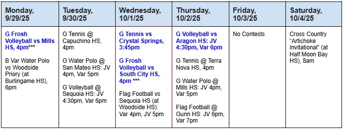 Come support our athletes! Go Knights! (Games in BLUE = home games)