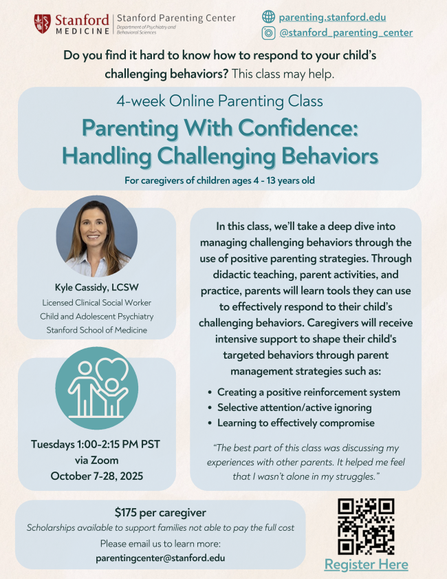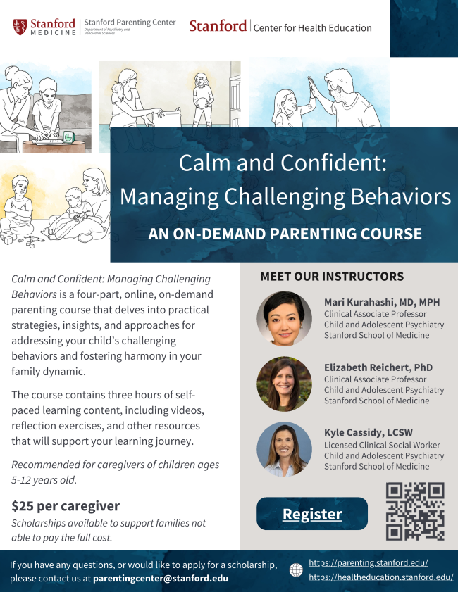 We are currently enrolling for five online parenting classes this fall. These are small, interactive group courses facilitated by Stanford clinicians and faculty:
