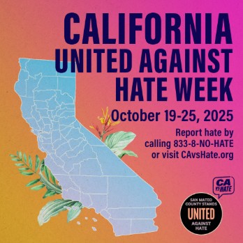 Our communities deserve support and healing when targeted by hate. October 19 -25 is #UnitedAgainstHate week: We stand against hate and discrimination toward immigrant communities. Let's celebrate our diversity and protect our neighbors from hate. If you witness or experience an act of hate, report it by calling 833-8-NO-HATE or visiting CAvsHate.org. Reporting is available in 200+ languages over the phone and 15 languages online.
