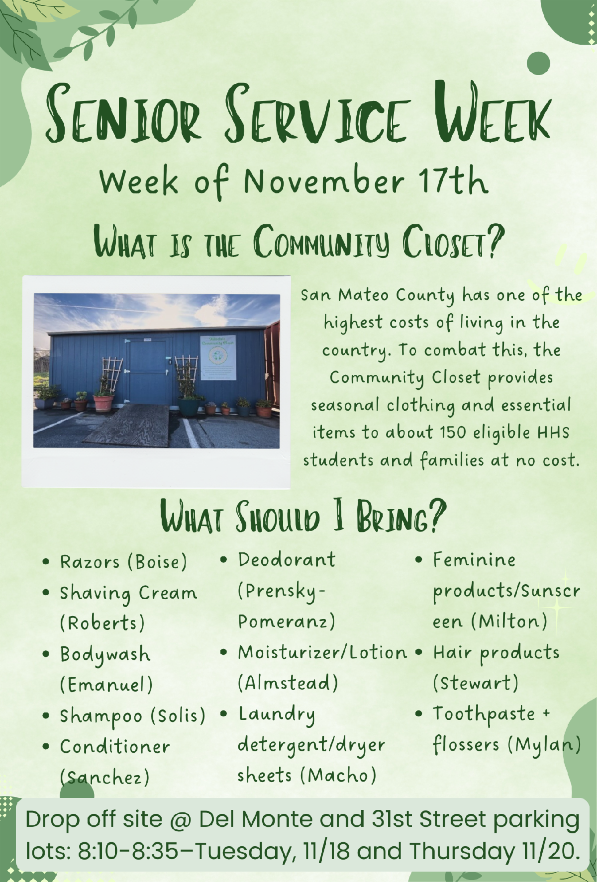 Week of Nov 17: Senior Service Week (Community Closet) (Flyer)