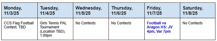 Fri Nov 7: Homecoming Game vs Aragon @ HHS