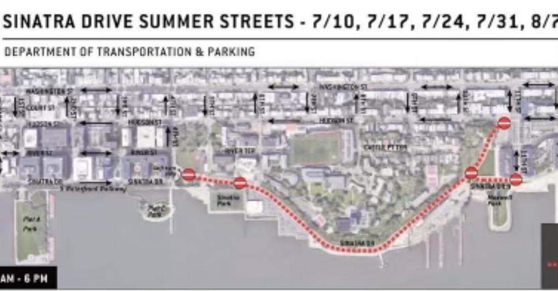 On Sunday, July 31 Sinatra will be closed to traffic from 8am-6pm for to the Sinatra Drive Summer Streets, an initiative presented by the City of Hoboken’s Department of Transportation & Parking.