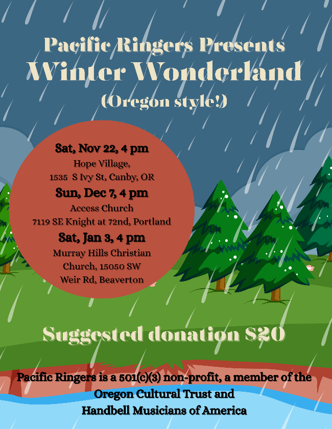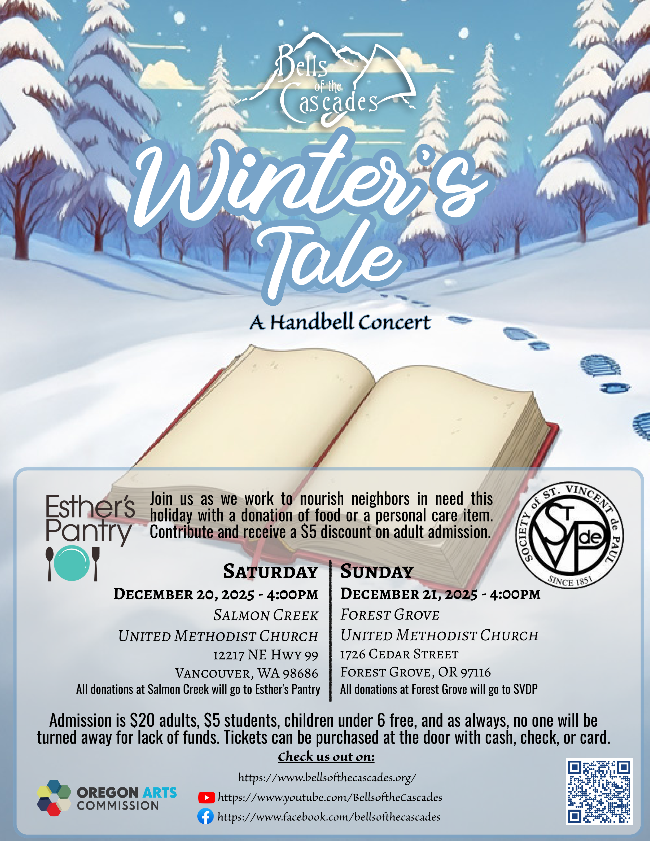 | | As the holiday season approaches, we invite you to join us for a festive performance filled with both new pieces and familiar favorites. This year’s program blends joyful, reflective, and heartwarming music that captures the season beautifully. Bring family and friends for an afternoon of ringing that will lift your spirits and add a little holiday magic to your season. | | |