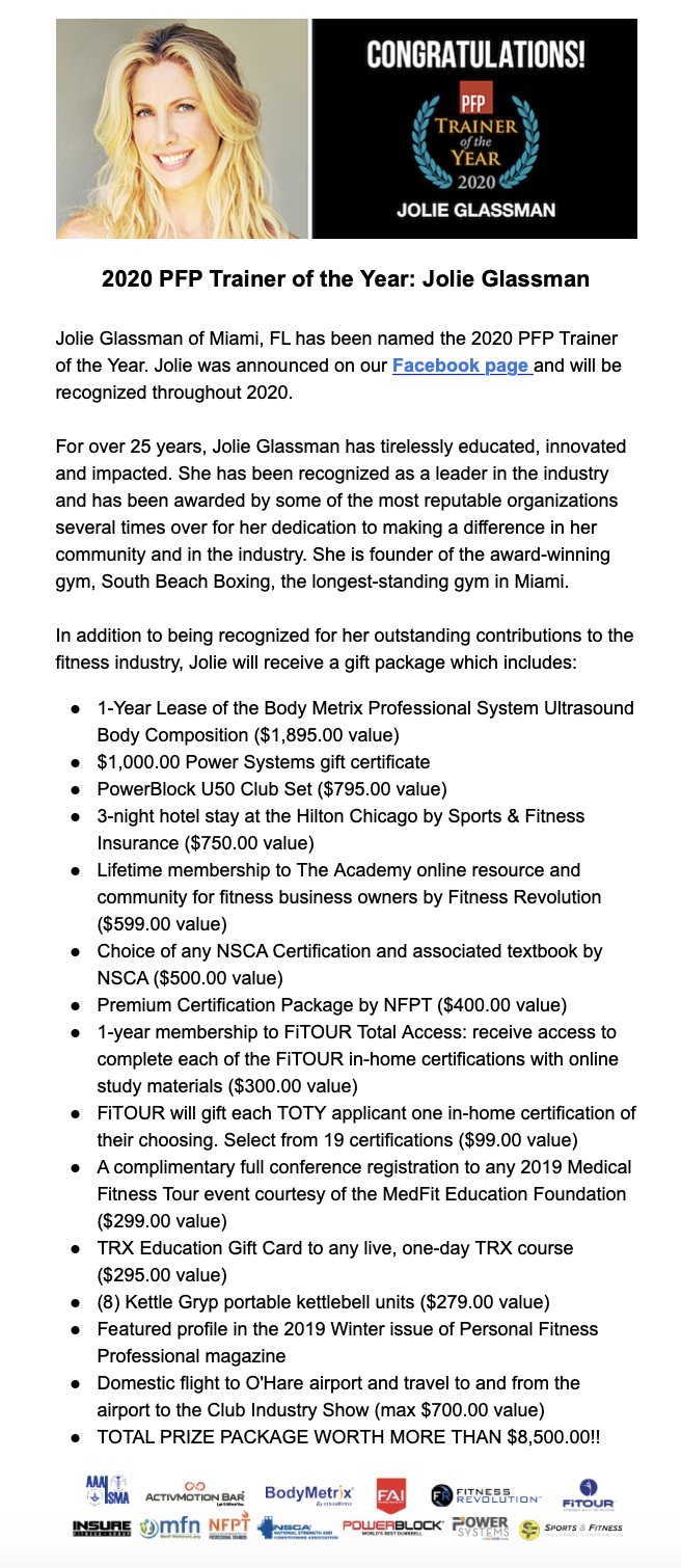Please email Jennifer Urmston at jennifer@sportsfitness.com to share your story.