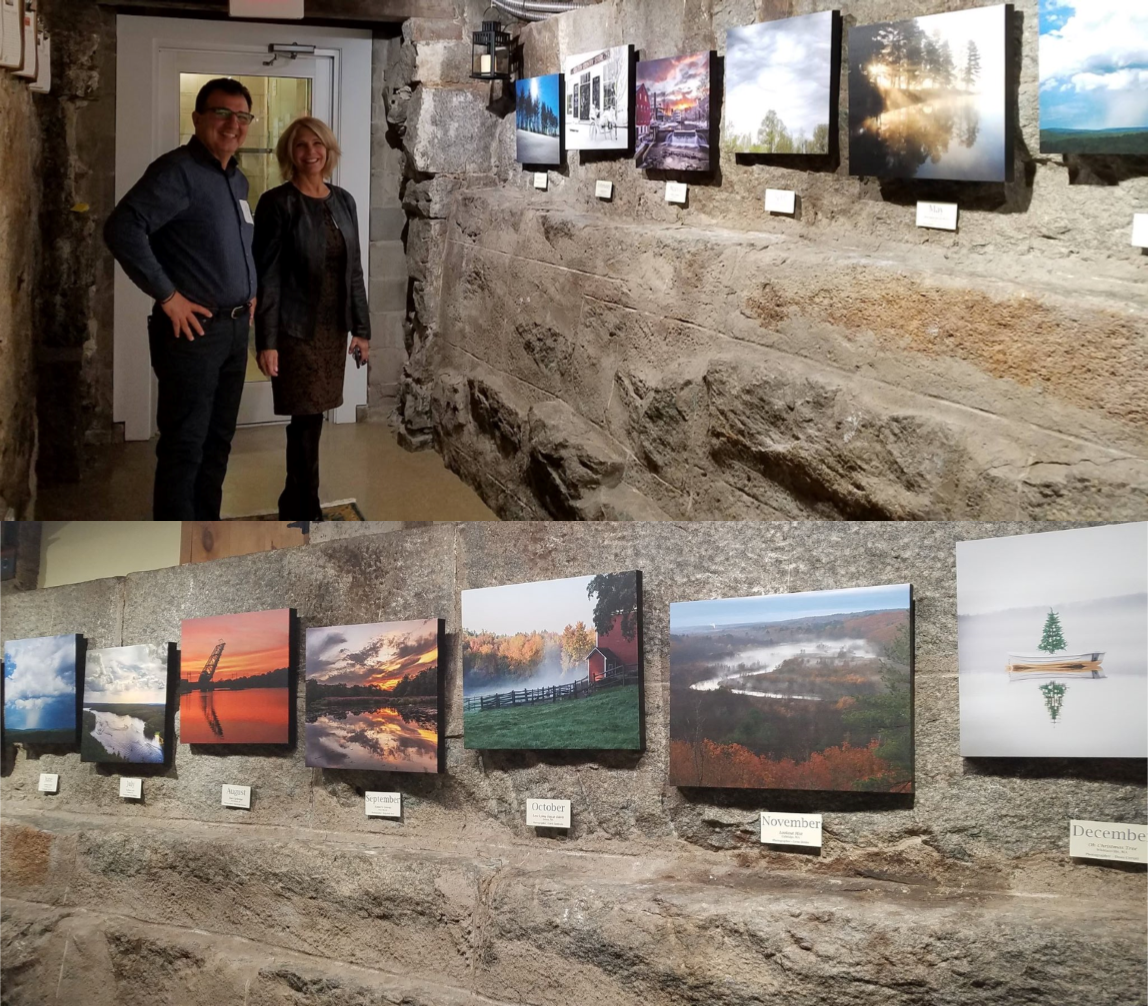 The BHC gallery was debuted at the Calendar Release Party on November 7 and features all 12 of the 2020 calendar photos, printed on 16 x 20-inch canvas, which perfectly fit along the granite wall which once served as a retaining wall for the mill's waterwheel.