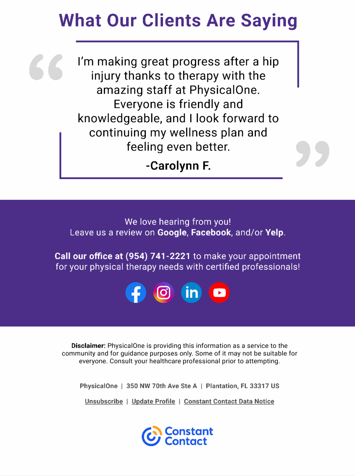 Disclaimer: PhysicalOne is providing this information as service to the community and for guidance purposes only. Some of it may not be suitable for everyone. Consult with your healthcare professional prior to attempting.