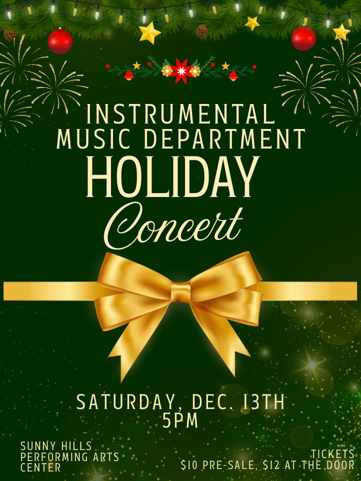 Instrumental Music Holiday Concert - Saturday, December 13 @ 5pm, PAC