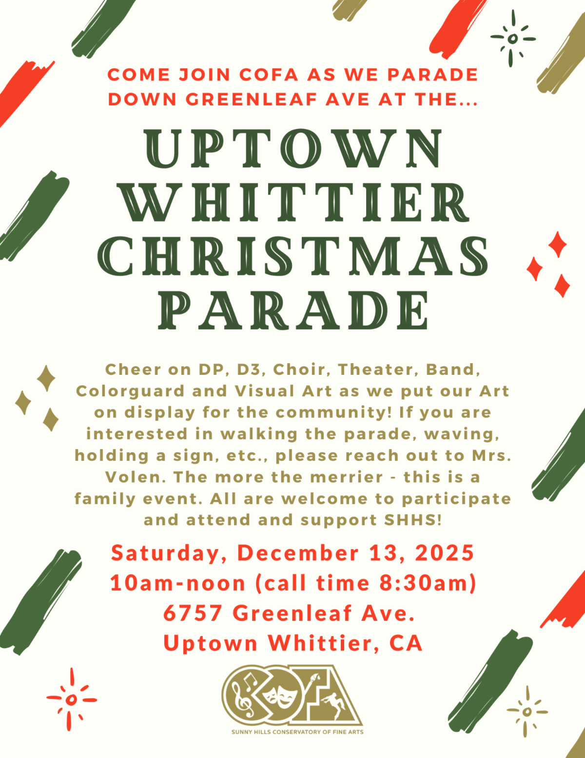 COFA in the Uptown Whittier Christmas Parade - Saturday, December 13 @ 10am, Greenleaf Ave., Uptown Whittier
