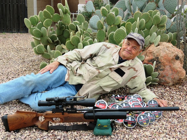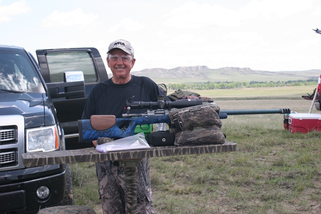 You can always tell a guy from Missouri, but you can't tell him much. Cliff Neuse with is NEW 223. His smile says it all! He killed a prairie dog at 615 yds on the second shot with this classy rig. The 5-25 Schmidt & Bender was the "cat's meow" under these conditions. The Radial Baffle Brake made spotting the hits child's play.