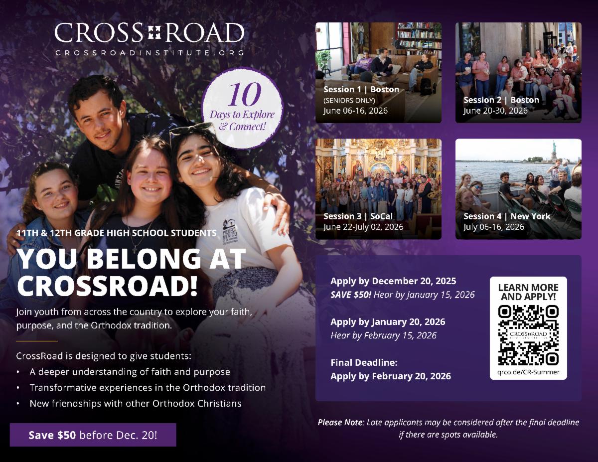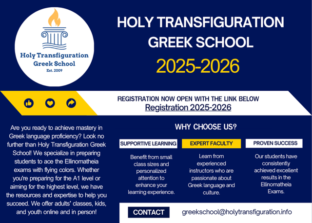 Registration for our 2025-2026 youth ministries (Catechism, Hellenic DanceHope & Joy, GOYA) is now open! Please register your child/children and select what ministries he/she/they will be participating in.