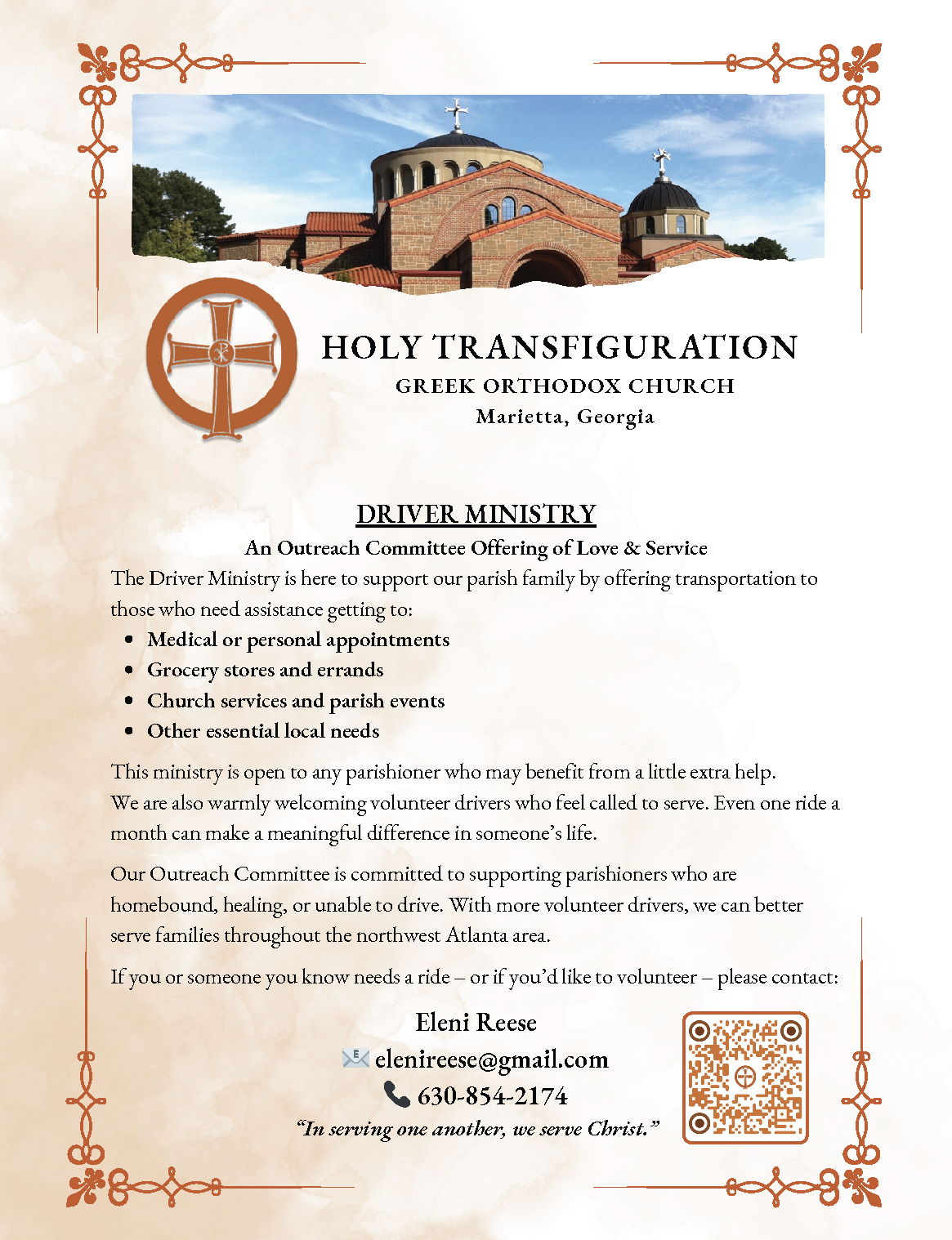 | | For our full calendar of events and services, visit https://holytransfiguration.info/calendar/ | Due to the number of ministry events in this email, some email programs cutoff our message and include a link to see the full version in a web browser. If you do not see a flyer for an event listed above, please access that link. | | SPECIAL ANNOUNCEMENTS & EVENTS | | |